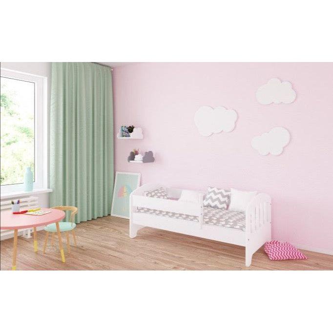 Grace Toddler Bed blends style and safety, featuring a sturdy frame that supports up to 110 kg. Perfect for toddlers, it comes with adjustable side rails.