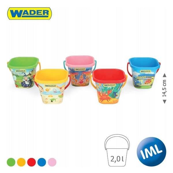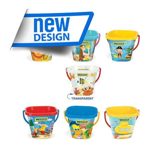 Square bucket with a capacity of 2 liters. The toy is available in five different colour versions. Each version is decorated with a different picture.